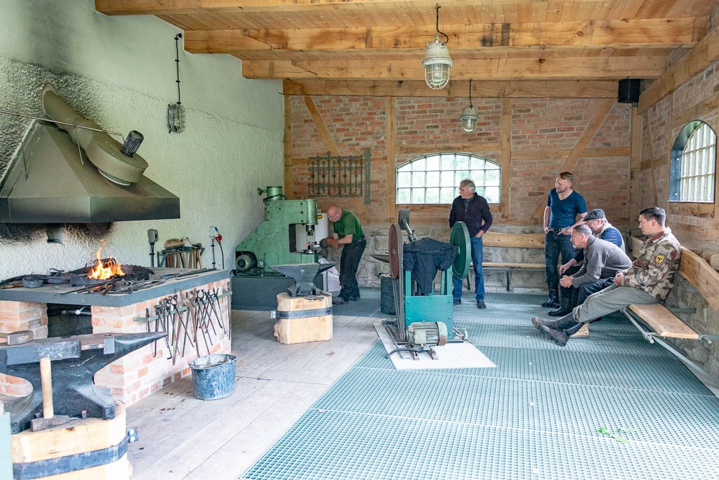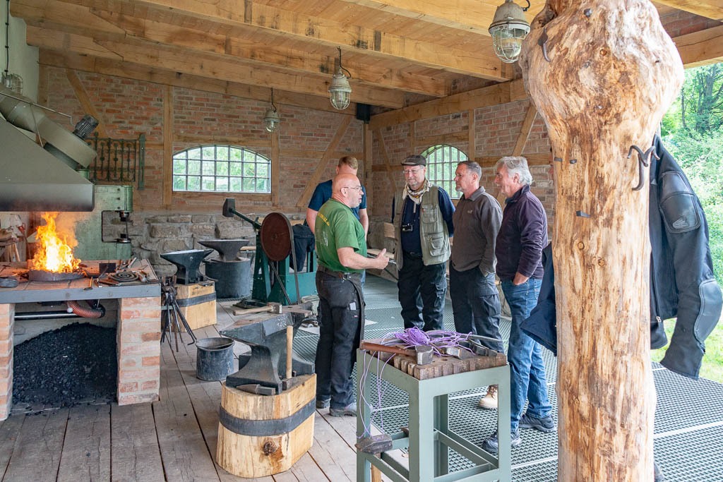 Was lag da für die Oldtimerfreunde, die allesamt über eine große Berufserfahrung im Metallhandwerk verfügen, näher, als mit „Heißen Öfen“ zum heißen Schmiedefeuer des Meisters zu fahren.